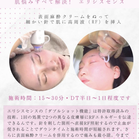 - 照射(エリシスセンス):出力・深度・ショット数を最適化。