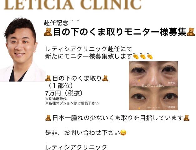 ですが、若干ながら目の下のくま取りと、小顔脂肪吸引のモニター様枠のご案内が