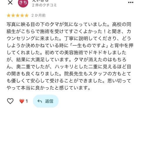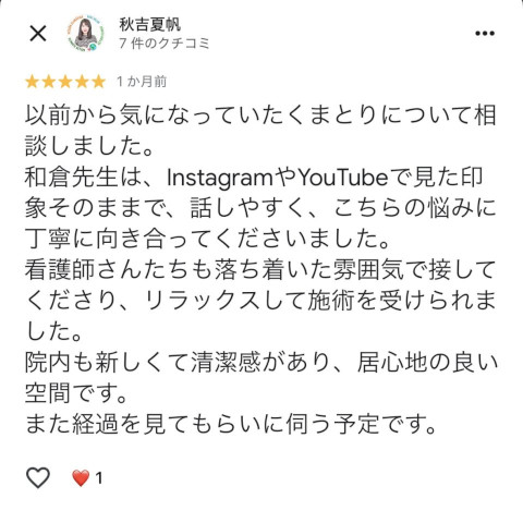 - 「クマが改善しただけでなく、目の開きまで良くなった」