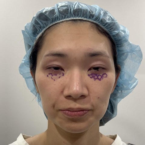 お写真は通常の3部位のみを処理したケース。外側の脂肪が残っているため、涙袋が出ていません。