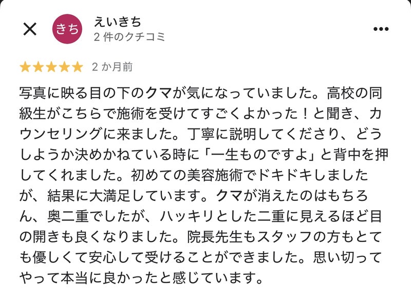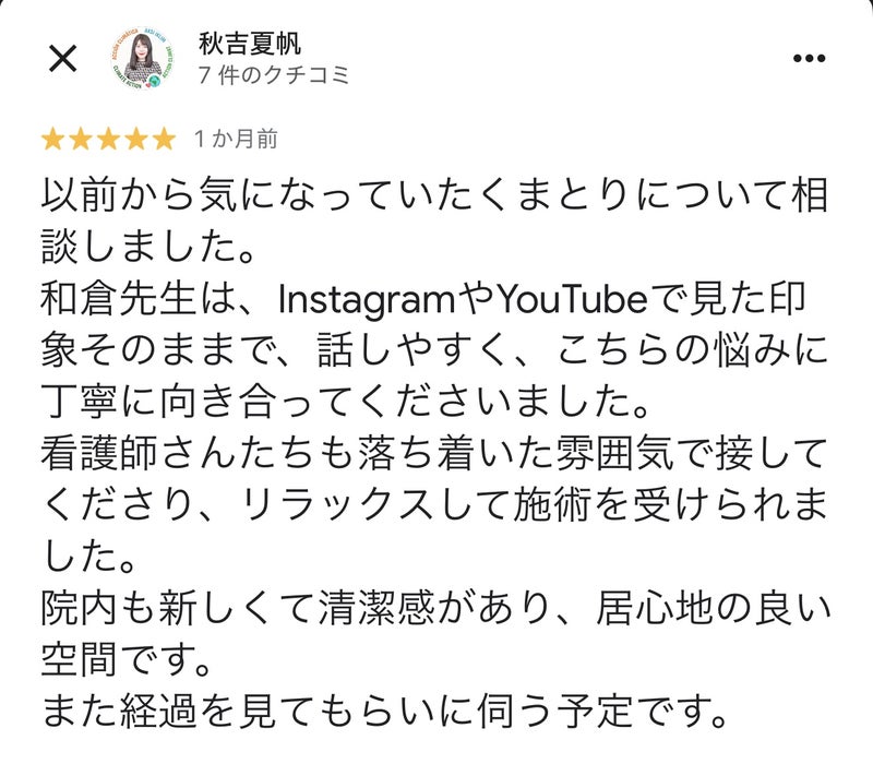 やはり、目の開きが良くなったってことの評価しっかりとされていますね。また、小顔先生こと、私、和倉も積極的にYouTubeやSNSで「4Dクマ取り®︎術」の発信をしてることもしっかり評価されてるのは嬉しい限りです。