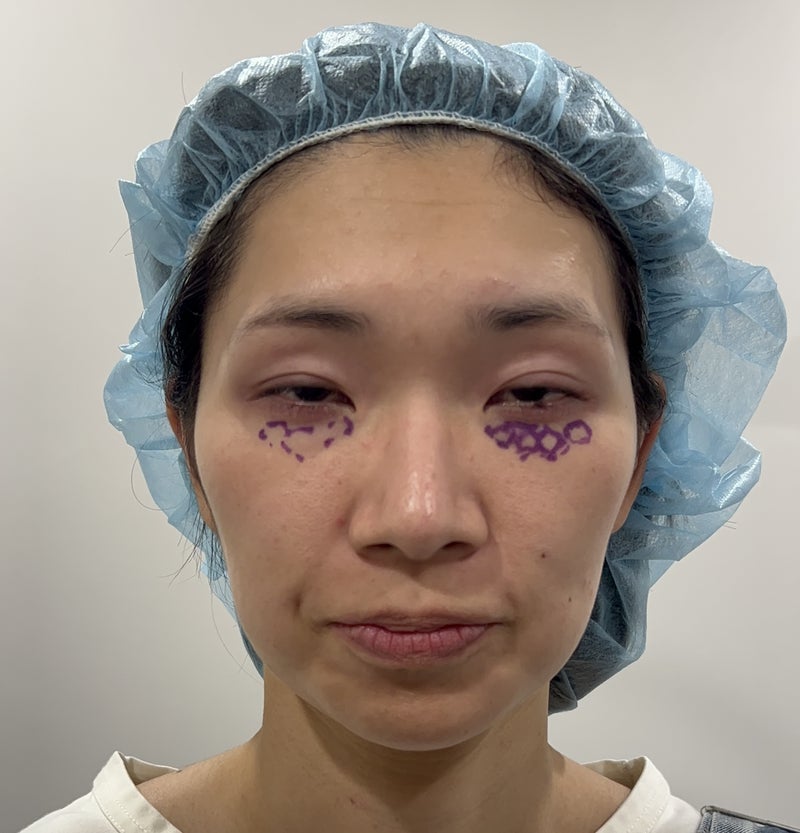 では、実際の目の膨らみのマーキングを見てもらいましょう。