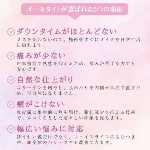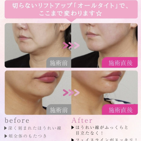 「オールタイト」は、アエルクリニック表参道、アエルクリニック大阪で導入しております。
