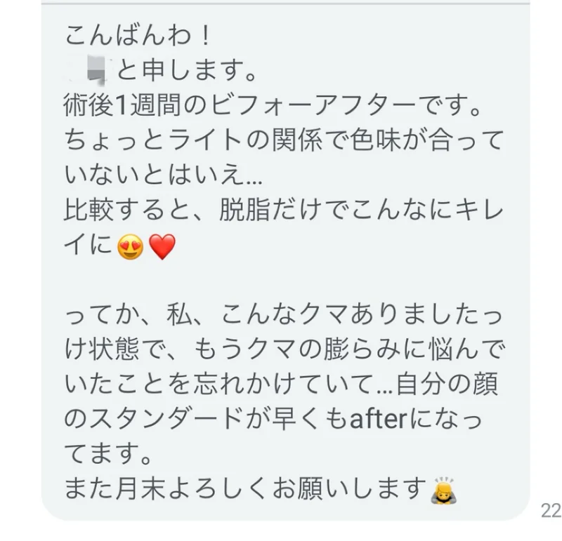 【クマ取り】患者様から嬉しいお言葉を頂きました(※画像あり)