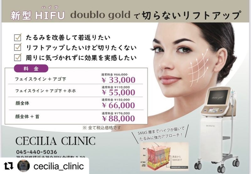 小顔先生が院長をしている、横浜駅直結のセシリアクリニックでもHIFUのキャンペーンを