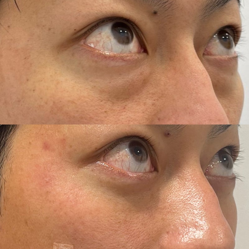 お写真の施術前、1年後を見ると、隠れてる涙袋が綺麗に出てきてますよね。