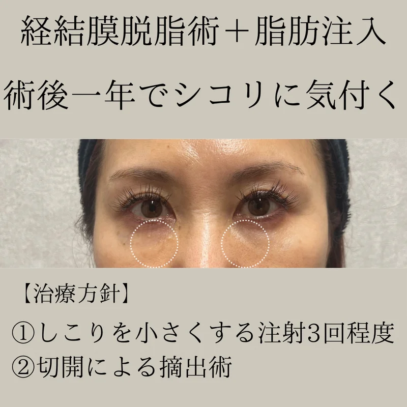 術後、しばらくは気にならなかったけど、1年くらいすると、目の下にコリコリするものがある事に気付かれました。