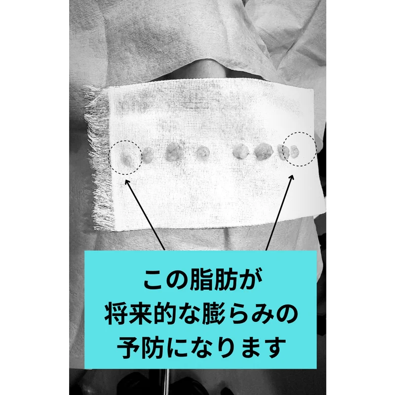 私たちは、脂肪の圧排を均一に解除するだけでなく、将来的に目尻側の脂肪が顕著になるのを予防する意味合いでも、外側の脂肪までしっかりと摘出しております。