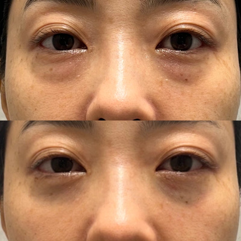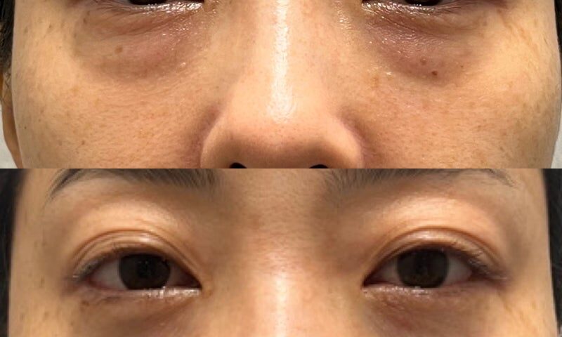 本日、経過を伺うと、その症状はすっきりなくなリました。目の下のクマ取り後の経過は凹みはほとんどなく、今では馴染んですっかり満足です。