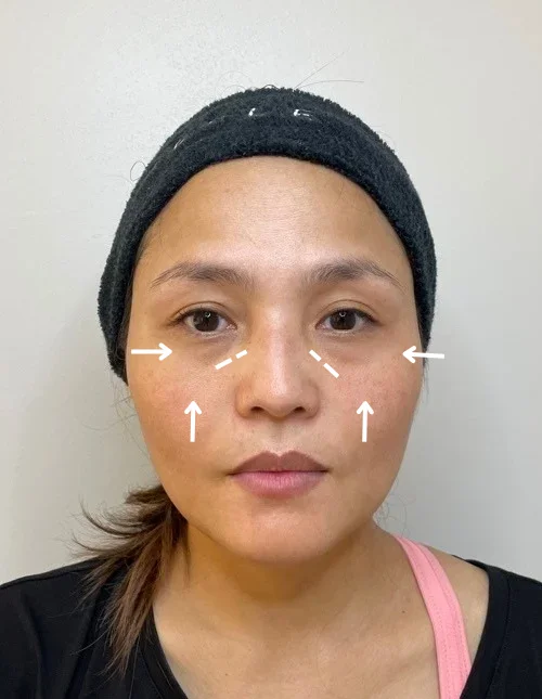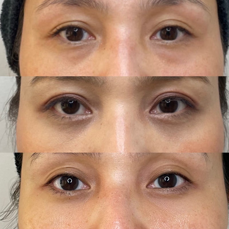 「脱脂術で目の下が凹むのと、膨らみの下の溝が目立つので脂肪を注入しましょう。