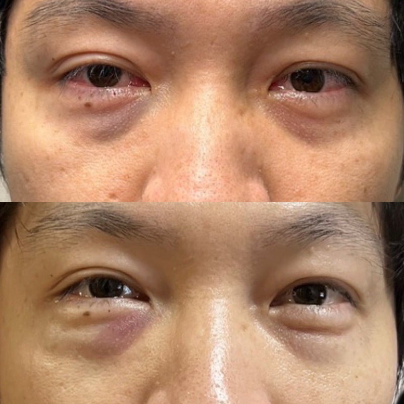 左眼(向かって右側)はほとんど腫れてないですよね。