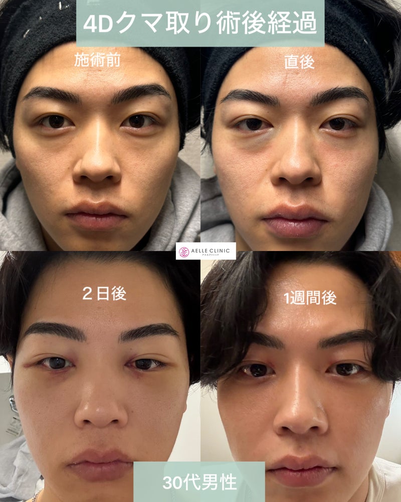 仕事で疲れ顔を心配される機会が増えてどうにかしたいと考えてたところ、パートナーが当院で4Dクマ取りを受けたことで決意し、来院されました。