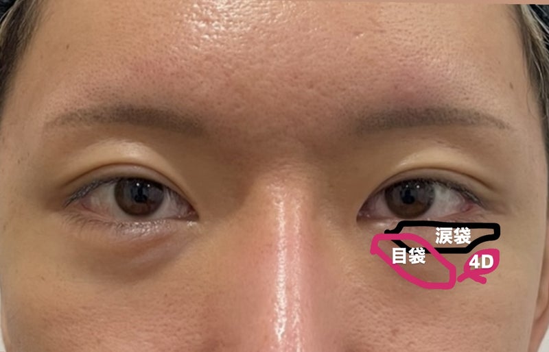 この患者様は目袋の脂肪の取り残しが顕著に、そして4D部分もしっかりと残ってるので、せっかく涙袋が元来綺麗にあるのに、浮き出てこないままとなってます。