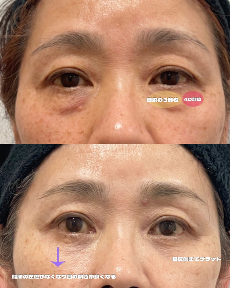 4Dとは、目袋の外側、目尻側の脂肪の部位の事です。